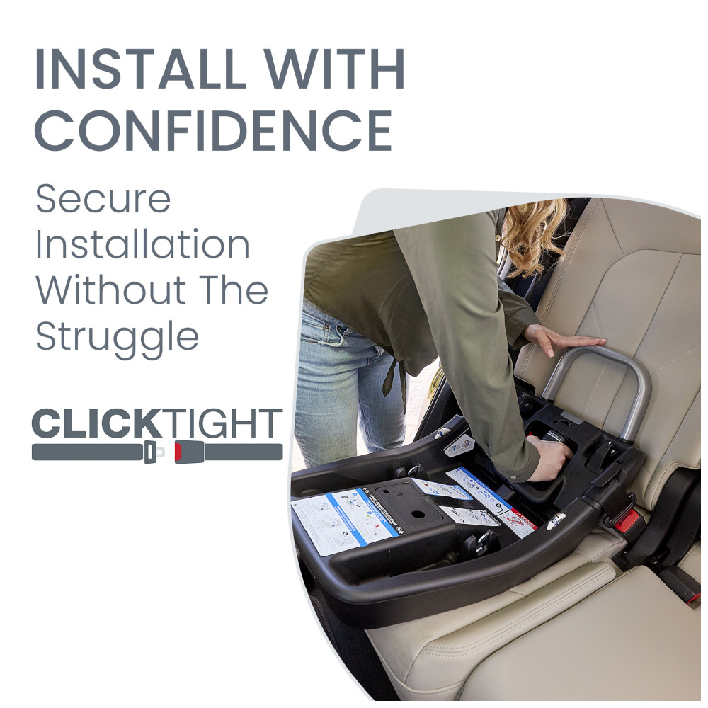 Instale sempre com confiança A instalação do ClickTight é segura e sem problemas, seja usando o cinto de segurança do veículo ou conectores inferiores Indicadores de nível e reclin